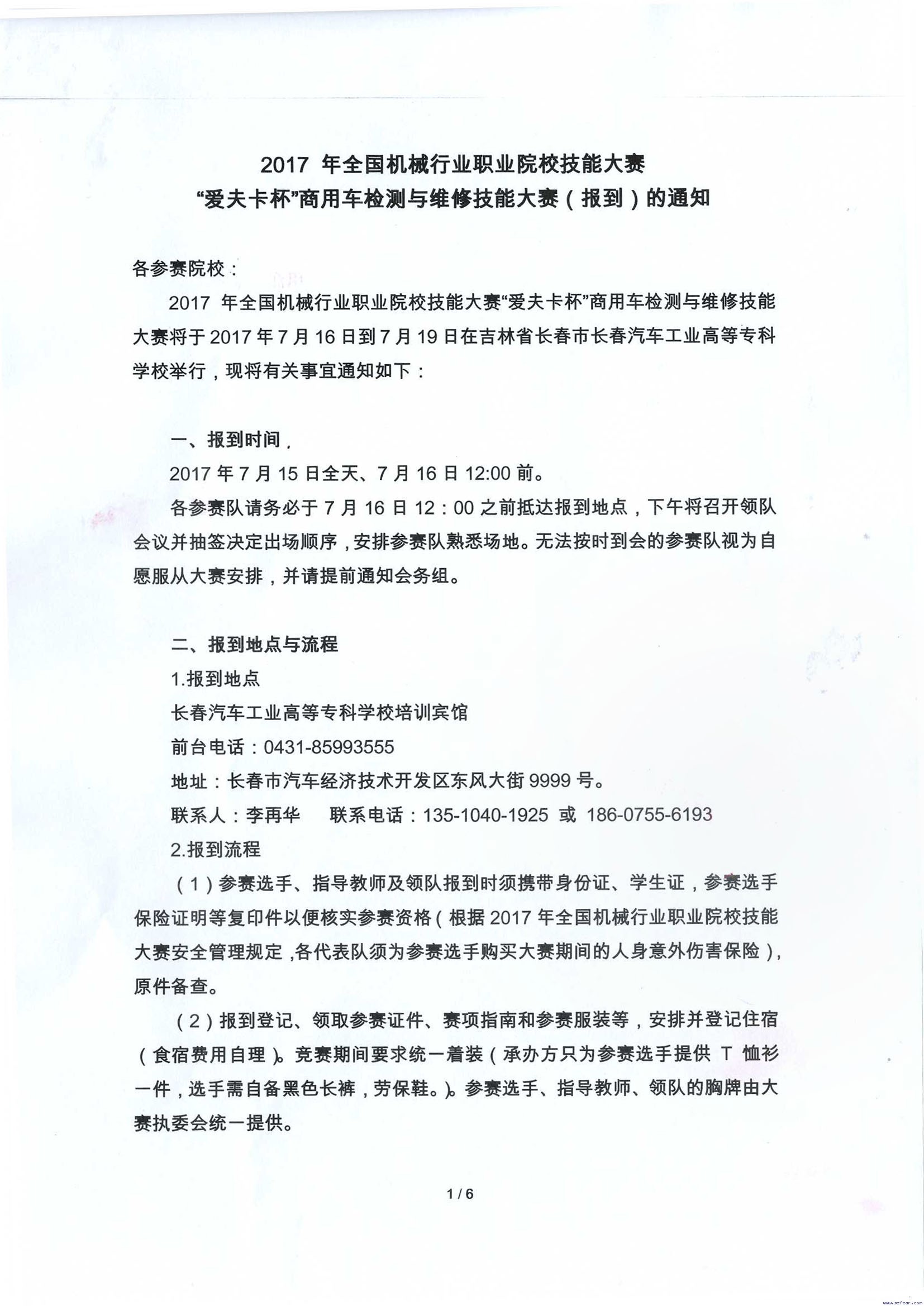 “爱夫卡杯“商务用车检测与维修技能大赛(报到)通知如下,请各位参赛师生做好参赛准备!