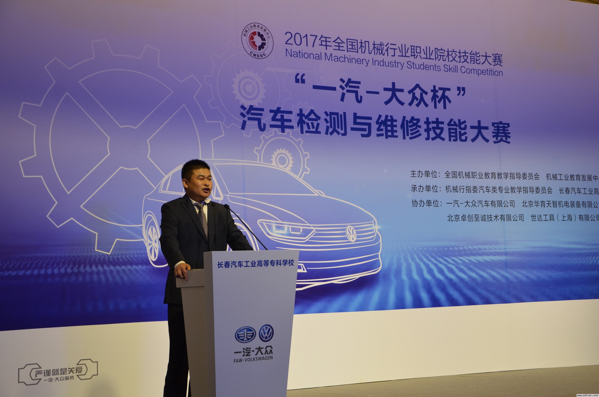机械工业教育发展中心产教合作处处长、全国机械职业教育教学指导委员会产教合作与促进指导委员会秘书长王志强宣布“爱夫卡杯”商用车检测与维修技能大赛圆满落幕